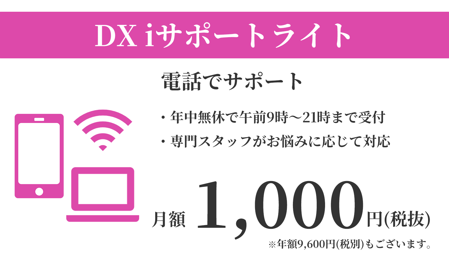 ■i'サポート(ライト):電話でのリモートサポートについてのサポート範囲については約款、i'サポート(ライト・スタンダード・プレミアム)のメニュー表をご確認下さい。